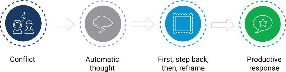 Participants learn how to “catch” and reframe their thoughts, which can help them choose more productive behaviors in conflict.