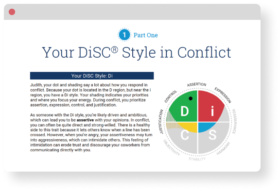 Everything DiSC® Productive Conflict increases learners’ self-awareness around conflict behaviors, helping them