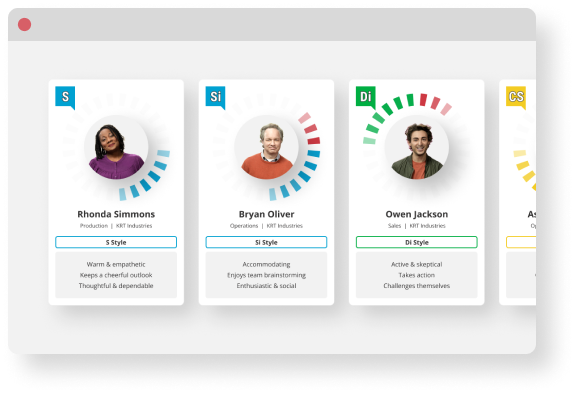 Designed to support instructor-led facilitation or individual exploration, Catalyst helps people adapt to others in real-time, unlocking engagement and inspiring more effective workplace collaboration. Catalyst integrates DiSC into the flow of work, ensuring takeaways are readily applied.